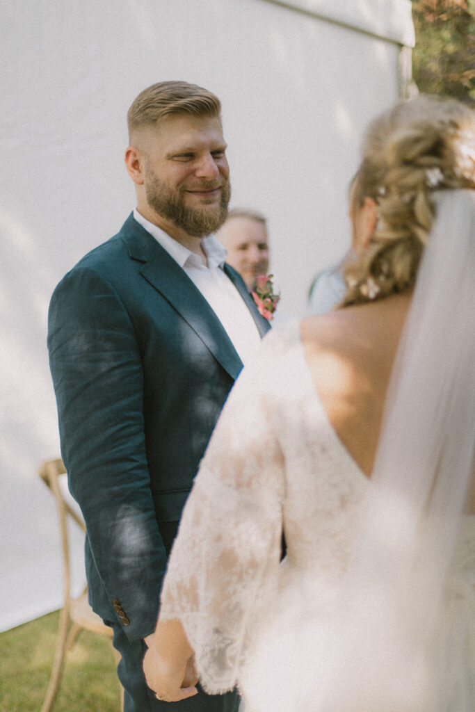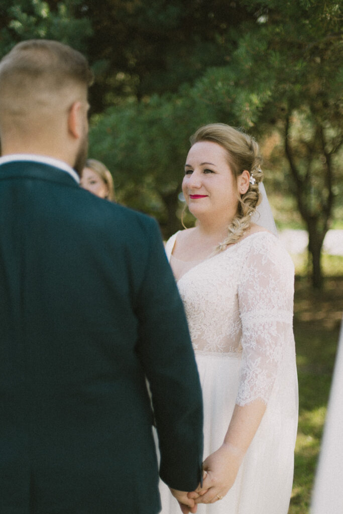 Fotografując ślub, jestem obserwatorką wydarzeń – ciepłą, uważną i pełną szacunku dla chwil, które rozgrywają się przed moim obiektywem. Działam dyskretnie, ale jednocześnie mam w sobie fotograficzną śmiałość, która pozwala mi podejść bliżej, nawiązać kontakt, ośmielić uśmiechem. Często to wystarczy, by w ułamku sekundy powstała nić porozumienia, a na zdjęciu pojawiła się prawdziwa emocja.